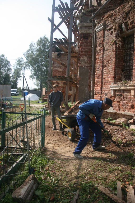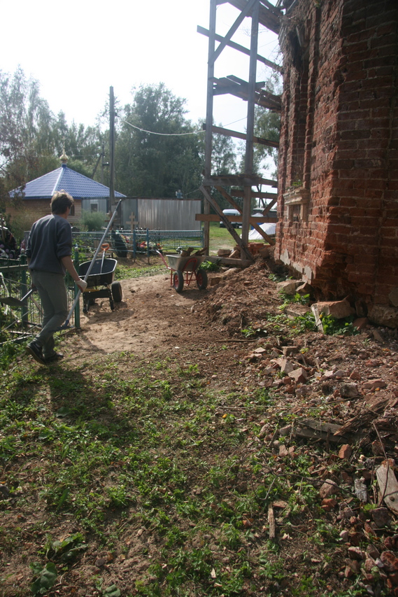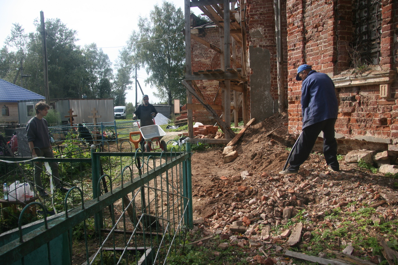 После окончания очередного этапа восстановления карниза восьмерика и перед подготовкой кровельных работ необходимо было продолжить расчистку территории.