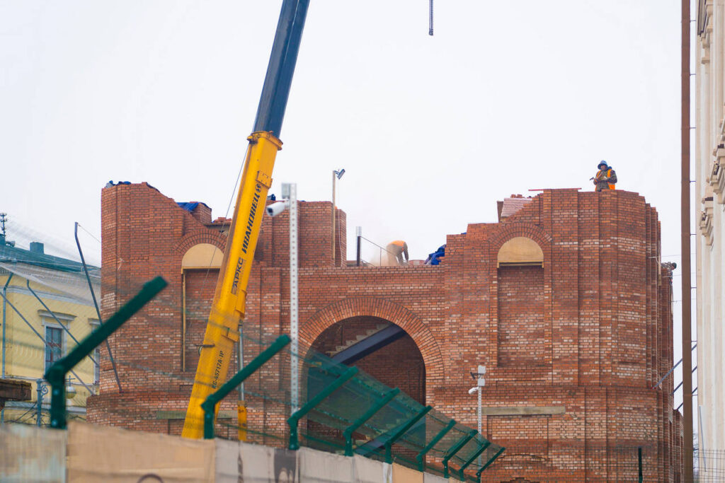 В городе продолжается масштабная стройка — восстановление колокольни набирает обороты благодаря активной поддержке местных жителей и гостей города. Работы идут с заметным прогрессом: за последнее время существенно увеличилась высота стен сооружения.
